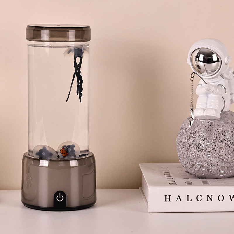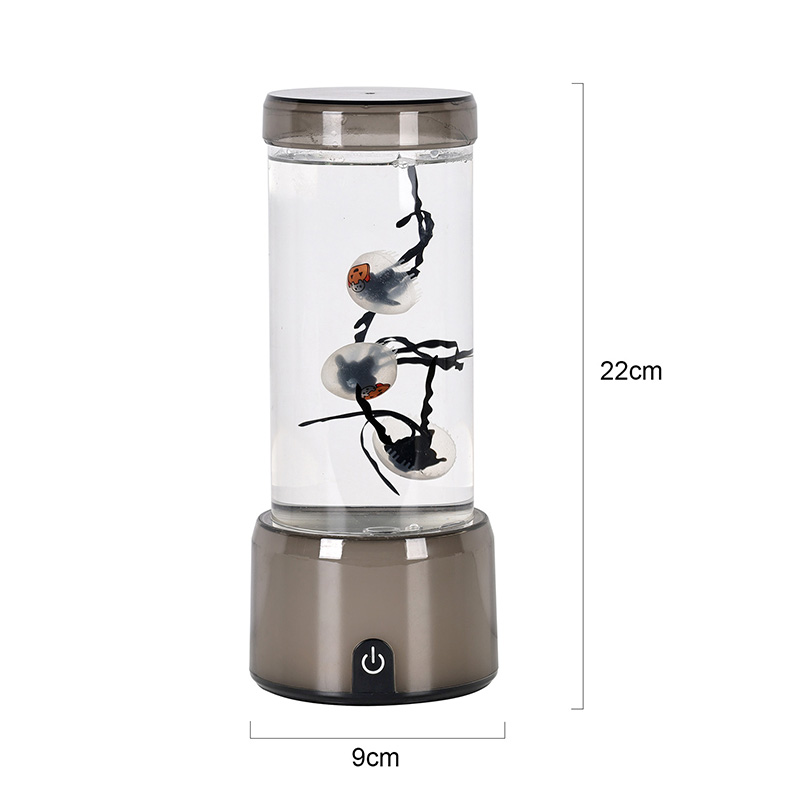 Bitte fügen Sie zuerst Wasser hinzu und geben Sie dann 3–5 ml Spülmittel in den Tank, damit sich die Quallen reibungslos bewegen können. (Bitte nicht die gelöste Seife hinzufügen)