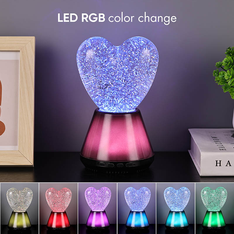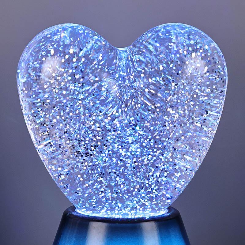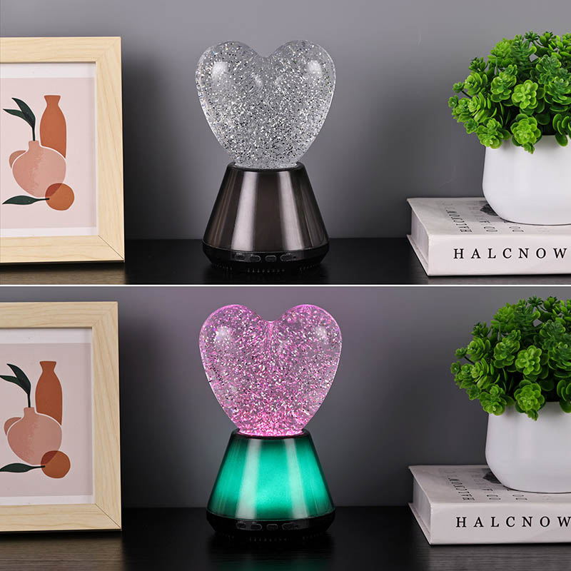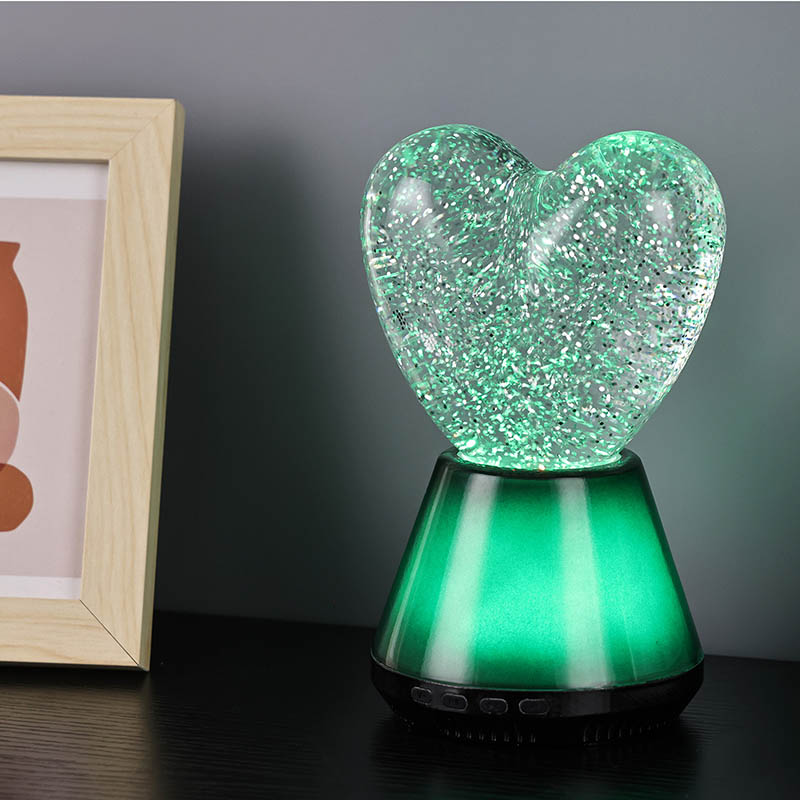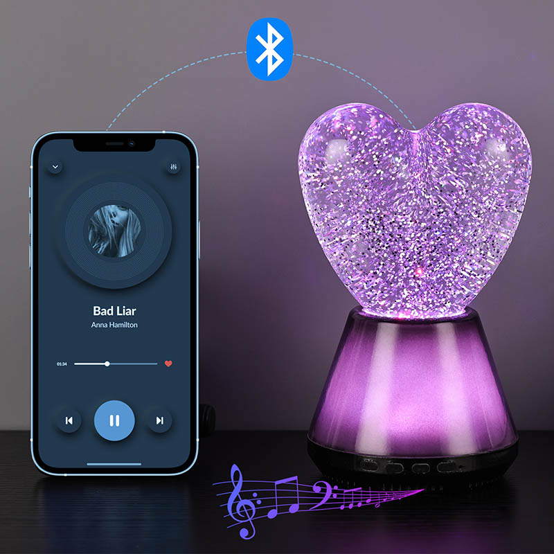 Das Innere des Bluetooth-gesteuerten LED-Nachtlichts mit glitzerndem Herz ist mit einer geheimnisvollen Flüssigkeit gefüllt, in der unzählige funkelnde Pailletten schweben. Wenn die Lampe eingeschaltet ist, fließt die Flüssigkeit langsam in die herzförmige Glaskugel und erzeugt so einen traumhaften Effekt. Diese Pailletten wirken wie verstreute Sterne, die sanft in der Flüssigkeit schweben und den Menschen das Gefühl geben, sich im Sternenhimmel zu befinden. Egal, ob es Tag oder Nacht ist, mit einem Herzschirm kann er Kindern Überraschung und Freude bereiten und ihnen ermöglichen, ihrer Fantasie in der verträumten Beleuchtung freien Lauf zu lassen.