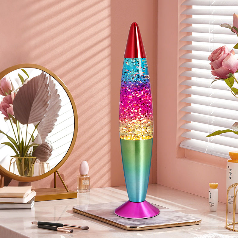 Bullet Color Glitter RGB-Licht ist nicht nur ein praktisches Beleuchtungswerkzeug, sondern auch eine exquisite Dekoration. Es kann auf dem Nachttisch im Schlafzimmer platziert werden und begleitet Sie durch jede ruhige Nacht; Kann auf einem Schreibtisch oder Bürotisch platziert werden, um Ihnen ausreichend und weiches Arbeitslicht zu bieten; Es kann auch in einer Ecke des Wohnzimmers platziert werden und verleiht dem gesamten Raum eine moderne und künstlerische Atmosphäre. Wählen Sie dieses dekorative RGB-Nachtlicht in Kugelform aus Metallgehäuse und sprühlackierter Glasflasche mit flüssiger Farbvariation