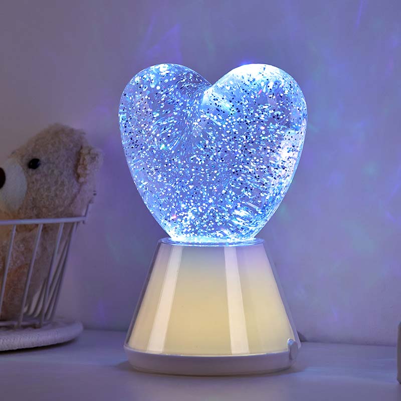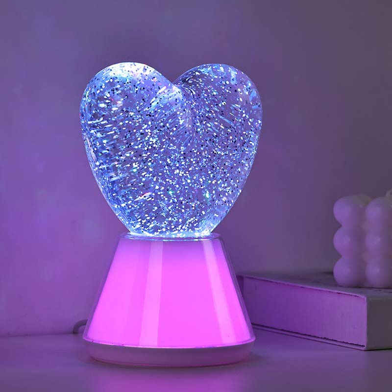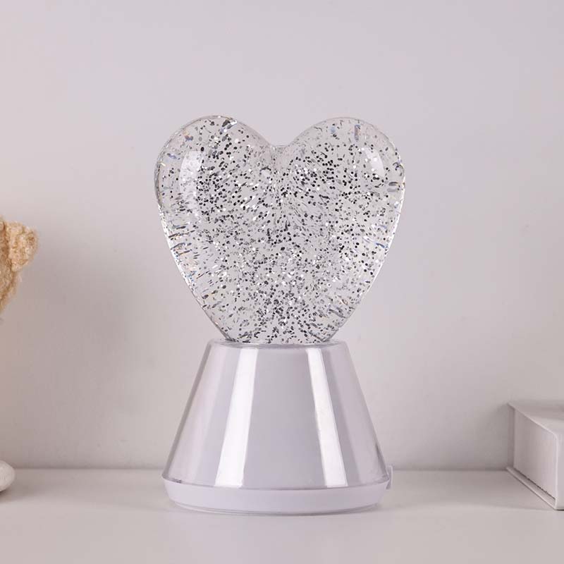 Farbwechselndes flüssiges Glitzer-Nachtlicht mit Herzschirm. verfügt über eine exquisite Glaskugel, gefüllt mit einer geheimnisvollen Flüssigkeit, in der schimmernde Pailletten schweben. Wie durch ein Wunder wirkt das farbwechselnde flüssige Glitzer-Nachtlicht mit herzförmigem Farbton, als würde man in einer magischen Welt tanzen.