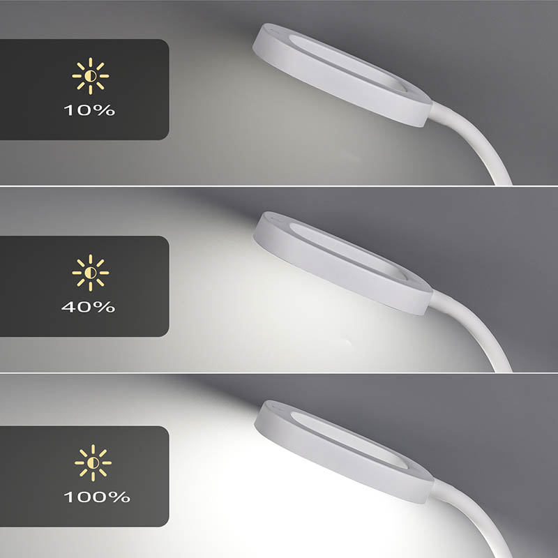 Eine der herausragenden Merkmale dieser Schreibtischlampe ist das dreistufige Touch Control Dimming. Durch einfaches Tippen auf die Basis können Benutzer die Helligkeit an ihre Bedürfnisse anpassen. Unabhängig davon, ob sie helles Licht für komplizierte Aufgaben oder ein weicheres Licht für entspanntes Lesen benötigen, erleichtert die Berührungssteuerung die perfekte Kulisse.