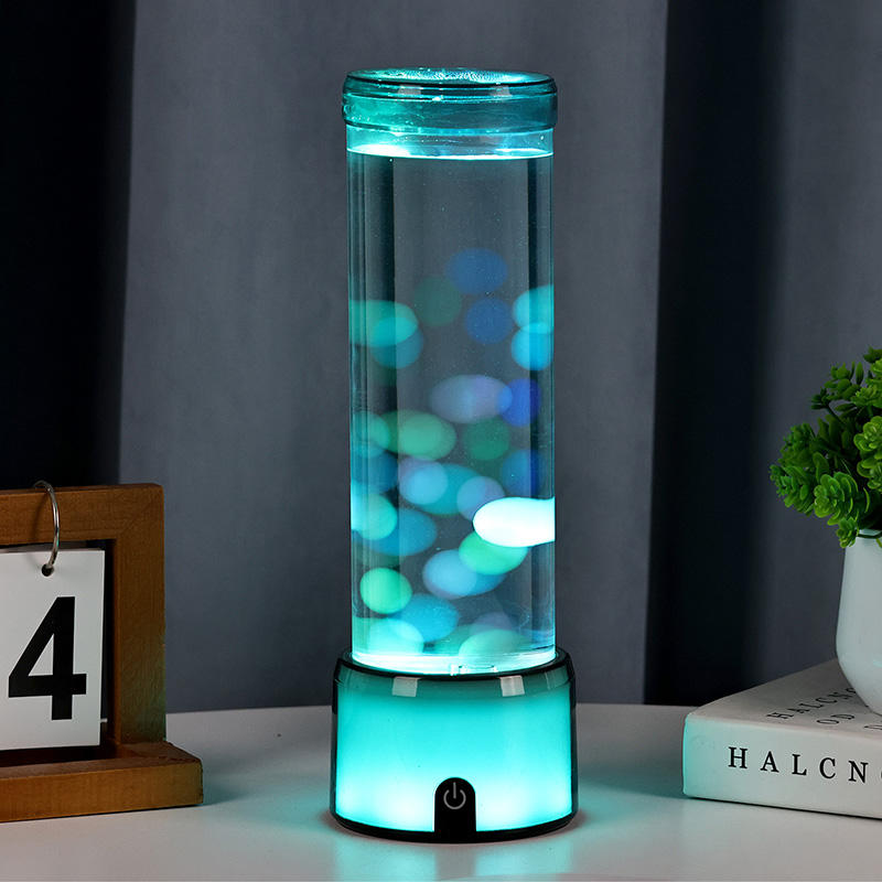 Produktbeschreibung: Zylindersimulierte Aquariumlampe mit farbwechselnder LED und leuchtenden Quallen – hohes, gleichstrombetriebenes, knopfgesteuertes dekoratives Licht
