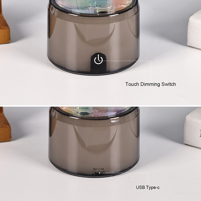Der Sockel der Lampe besteht aus hochwertigem, langlebigem Kunststoff mit einer eleganten Oberfläche, die zum Gesamtdesign passt. Es bietet eine hervorragende Stabilität und stellt sicher, dass die Lampe auch auf unebenen Oberflächen aufrecht bleibt. Der obere Deckel ist sicher abgedichtet, um ein Auslaufen zu verhindern, sodass er sicher und leicht zu warten ist.