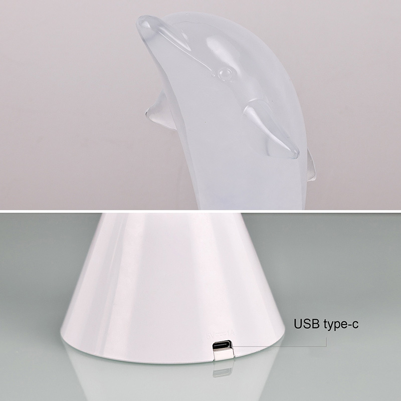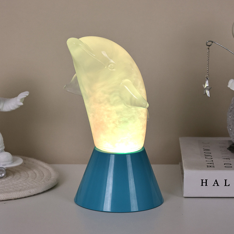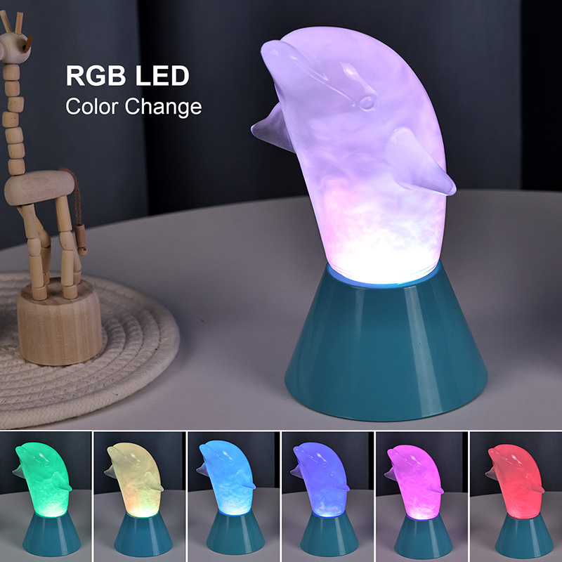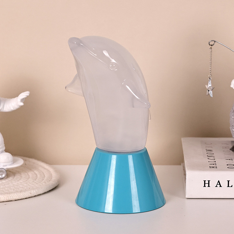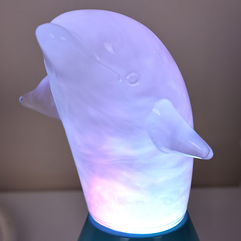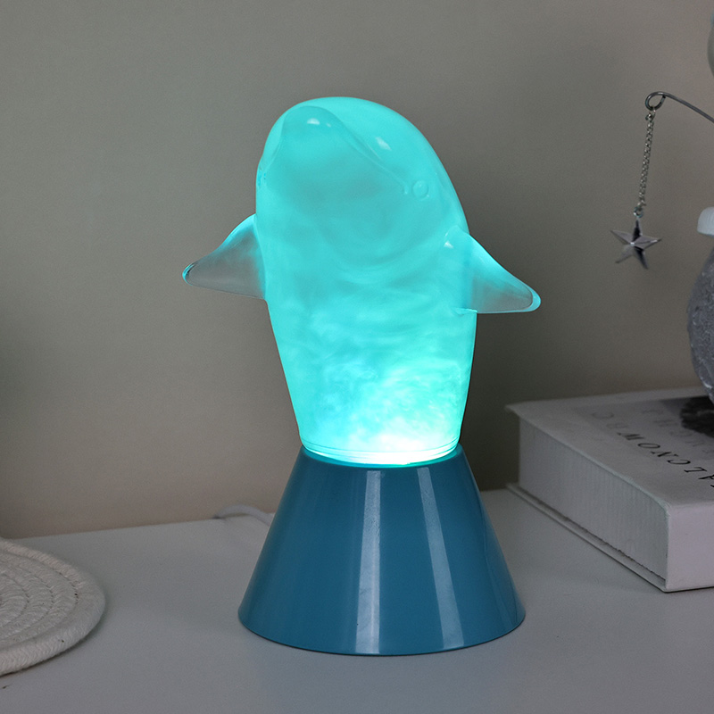 Das Dolphin Kid RGB-Nachtlicht hat die Form eines niedlichen Delfins, mit glatten Linien und exquisiten Details, die die bewegliche Haltung von Delfinen perfekt wiederherstellen. Im Inneren der transparenten Delfinschale ähnelt die neblige, fließende Flüssigkeit Wellen im Ozean, die sich sanft wiegen und eine friedliche und geheimnisvolle Atmosphäre schaffen. Jedes Mal, wenn Sie diese Lampe betrachten, haben Sie das Gefühl, in den Tiefen des Ozeans zu sein und den unendlichen Charme der Natur zu erleben