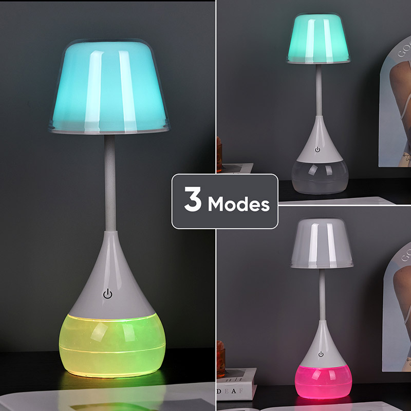 Aber die wahre Magie dieser Lampe liegt in ihrer Basis. Im Gegensatz zu herkömmlichen Designs, Eleganz- und Innovations -LED -Schreibtischlampen mit RGB -Form verfügt eine einzigartige Basis, die sich als dekoratives Stück dient. Im Inneren beherbergt es eine Flasche mit schimmernden, farbveränderten Flüssigkeit 亮片, wodurch ein faszinierender visueller Effekt erzeugt wird, der immer wieder fasziniert. Während die Flüssigkeit den Farben verweigert, fügt sie Ihrem Schreibtisch ein dynamisches Element hinzu, wodurch die Lampe zu einem ständig ändernden Kunstwerk macht.