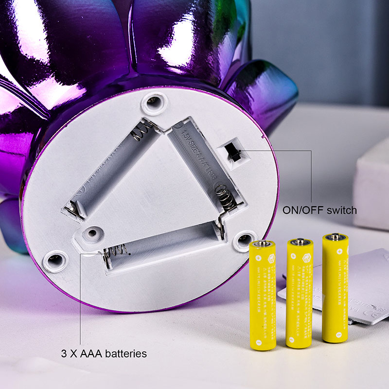 Der Sockel des Nachtlichts besteht aus hochwertigem Kunststoff mit luxuriöser violetter Sprühlackierung