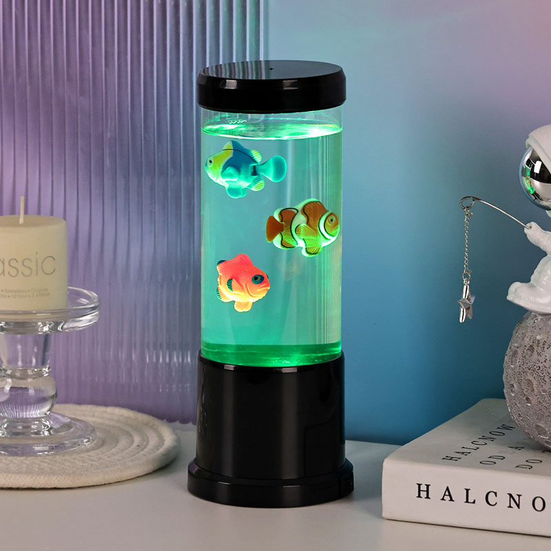 Wir stellen Ihnen die faszinierende LED-Fischlampe vor – eine atemberaubende Mischung aus modernem Design und Wassercharme, die den Zauber einer Unterwasserwelt in Ihr Zuhause bringt. Mit ihrem schlanken schwarzen Äußeren, der eleganten zylindrischen Form und der faszinierenden inneren Bewegung ist diese dekorative Lampe mehr als nur Beleuchtung –