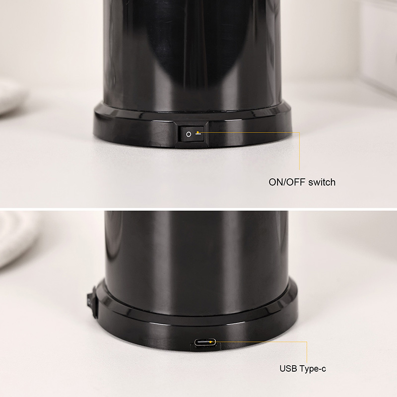 Die mit einem glänzend schwarzen Sockel und Deckel gefertigte Lampe zeichnet sich durch eine minimalistische und dennoch raffinierte Ästhetik aus, die zu jeder Inneneinrichtung passt. Ob auf einem Nachttisch, Schreibtisch, Regal oder Wohnzimmerakzent platziert, seine raffinierte Silhouette verleiht einen Hauch von Eleganz und lenkt gleichzeitig die Aufmerksamkeit auf die bezaubernde Szene im Inneren. Ein einfacher Knopfschalter an der Seite ermöglicht eine einfache Bedienung – drücken Sie einfach, um das Licht ein- oder auszuschalten, oder wechseln Sie ganz einfach durch die Farbmodi.