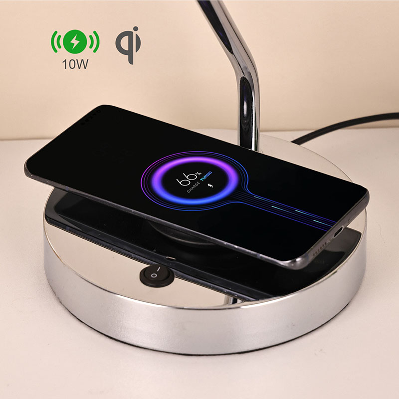 Die Schreibtischlampe mit Glasschirm und kabellosem Ladegerät ist außerdem mit einer kabellosen Handy-Ladestation aus Metall ausgestattet. Legen Sie das kabellose Ladegerät einfach sanft auf die Basis, um es schnell und ohne mühsames Aufladen aufzuladen