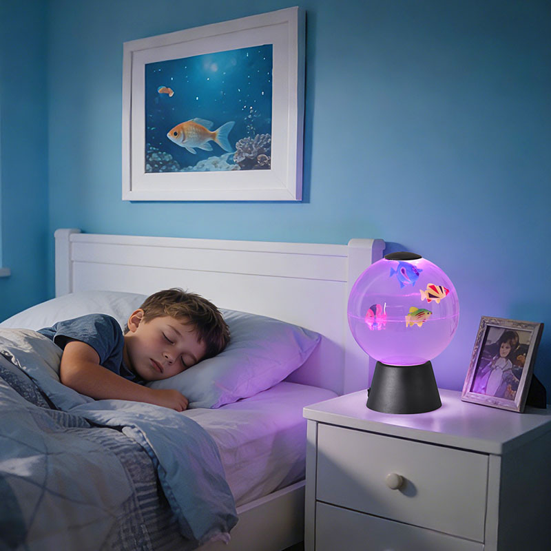 Als einzigartiger Akzent in jedem Raum kombiniert diese Fischkugel beruhigende Lichteffekte mit verspielter Animation
