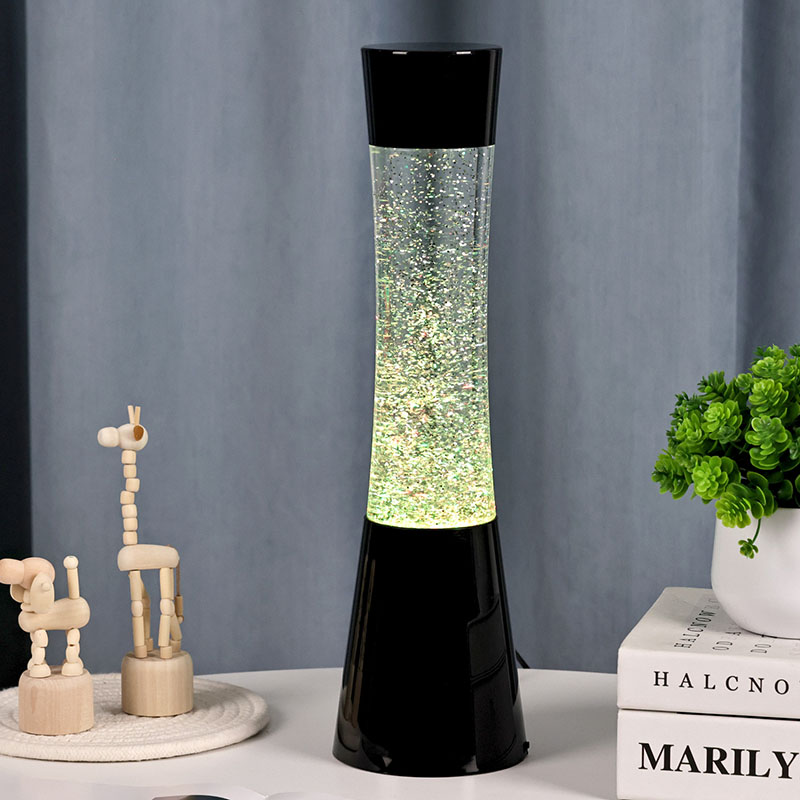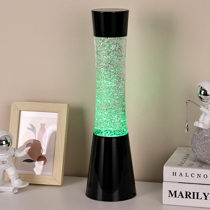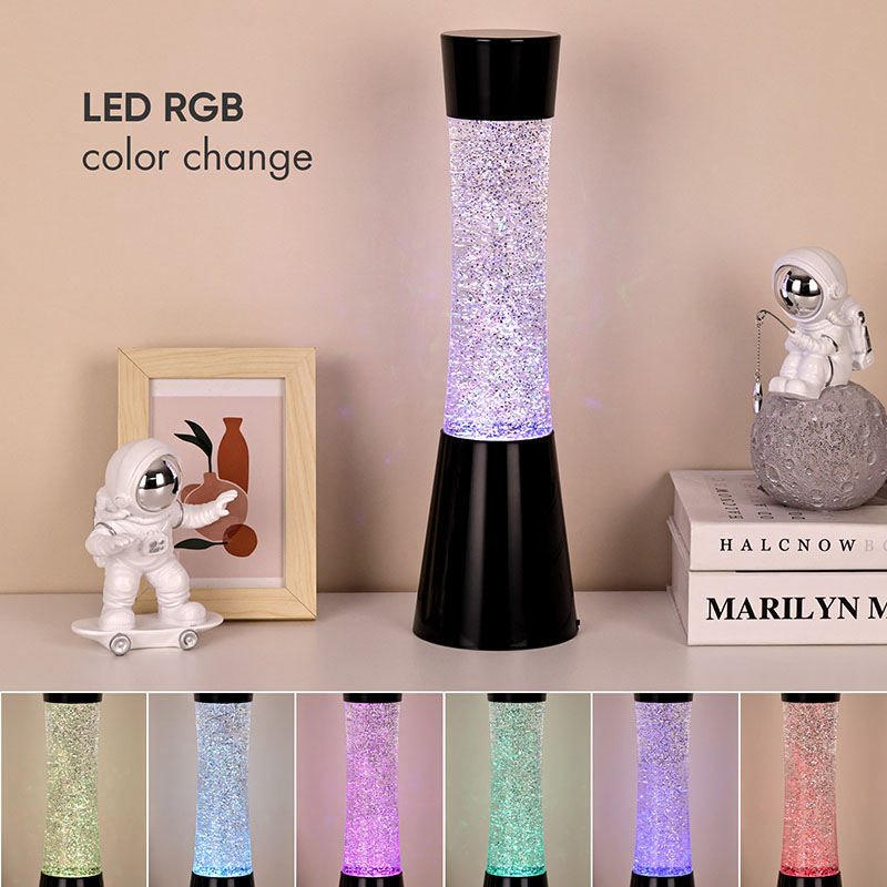 Ein weiteres Highlight dieses kleinen Nachtlichts ist sein flüssiges und glitzerndes Design im Inneren. Die Flüssigkeit enthält eine große Menge Glitzer, der unter Lichteinfall hell leuchtet, als würden unzählige Sterne am Nachthimmel funkeln. Während die Flüssigkeit fließt, verteilt sich der Glitzer unregelmäßig und erzeugt einen traumhaften visuellen Effekt. Die LED-Glitzer-Lavalampe mit 3AAA-Batterie verfügt auch über eine RGB-Farbbeleuchtungsfunktion. Durch die fortschrittliche LED-Technologie können Beleuchtungskörper weiches und gleichmäßiges Licht abgeben und die Lichtfarbe frei an unterschiedliche Szenen und Bedürfnisse anpassen. Sie können Ihre Lieblingsfarbe wählen oder die Beleuchtungskörper automatisch die Farben wechseln lassen, um ein farbenfrohes visuelles Fest zu schaffen.