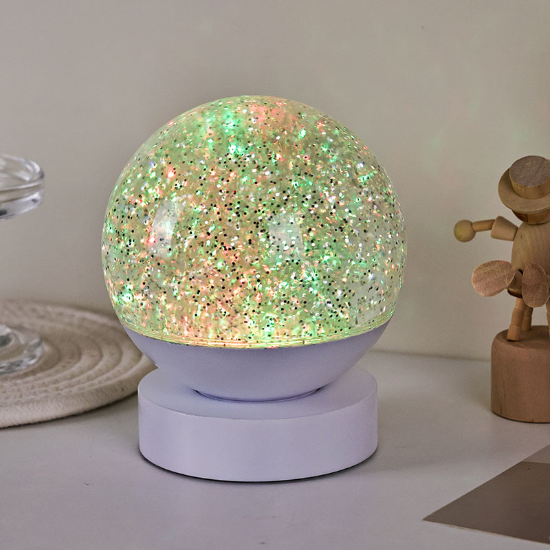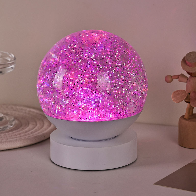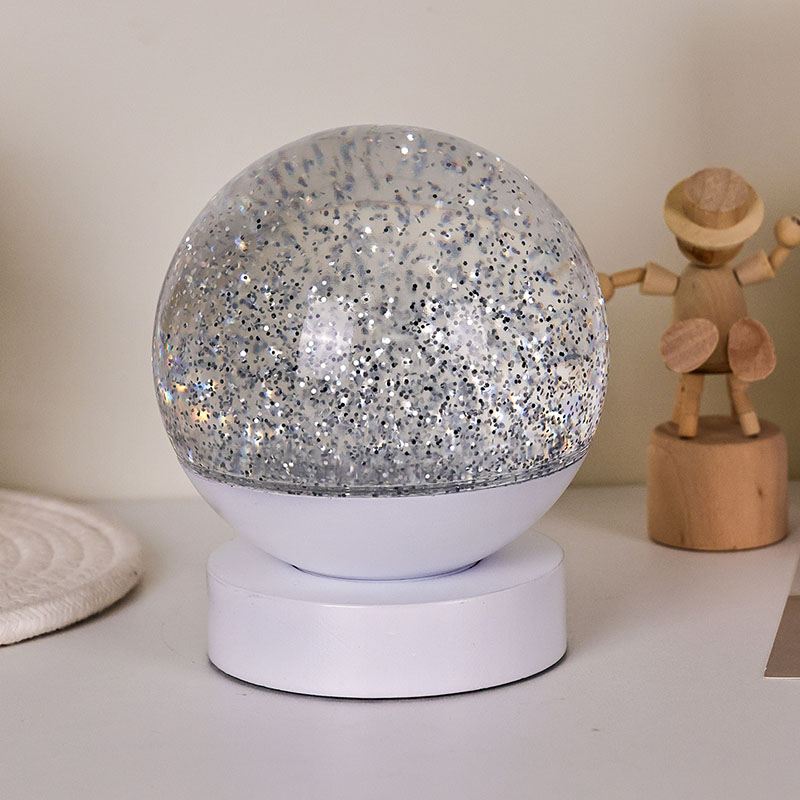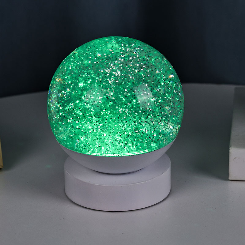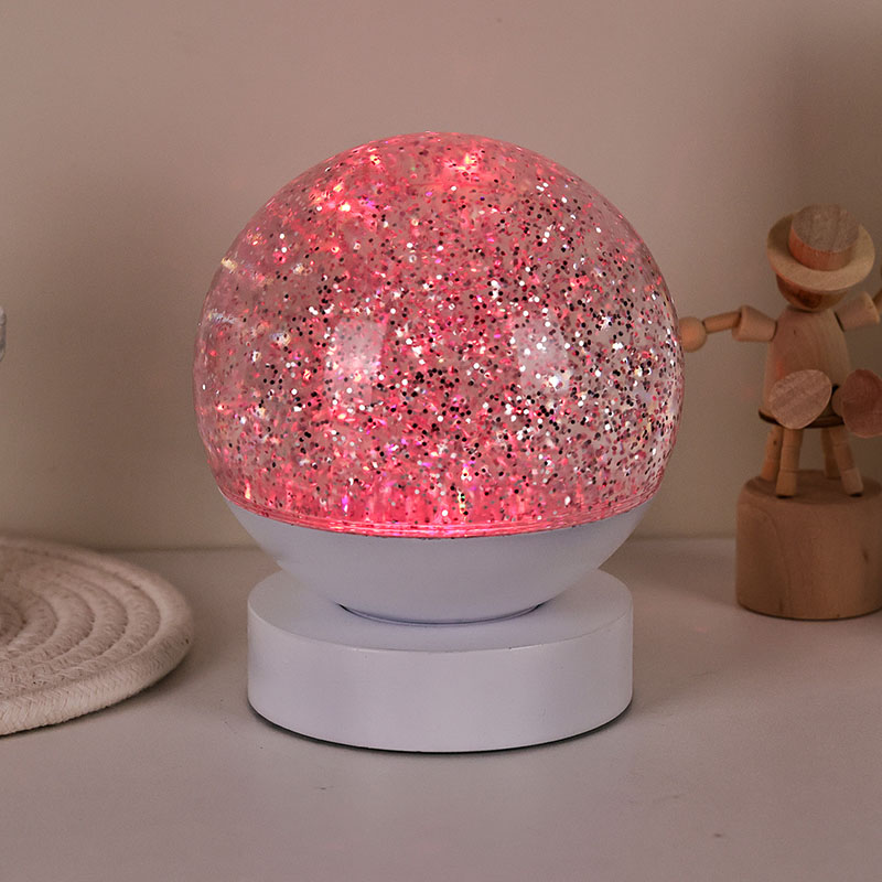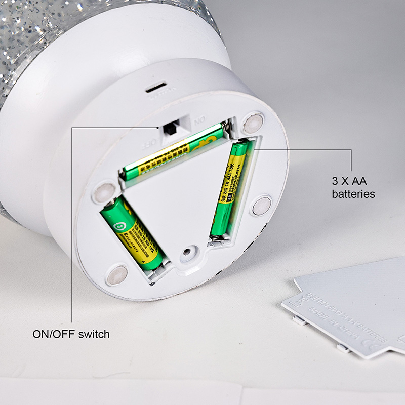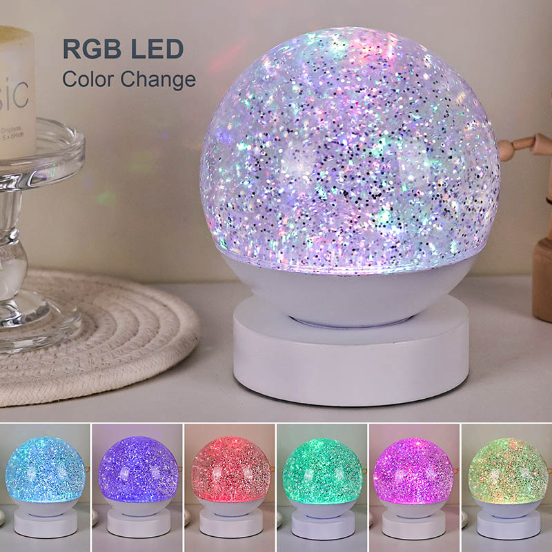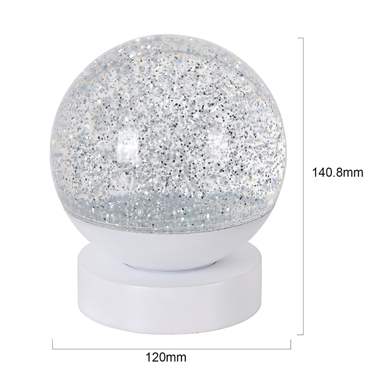 Die LED-RGB-Glitzerdekorlampe besteht aus hochwertigem Acrylmaterial und verfügt über eine durchscheinende Kugel mit hervorragender Lichtdurchlässigkeit. Die Basis besteht aus umweltfreundlichem ABS-Kunststoff und gewährleistet Stabilität, Haltbarkeit und Sicherheit ohne giftige Substanzen. Der Betrieb erfolgt mit drei eingebauten AAA-Batterien (Batterien separat erhältlich), sodass keine Steckdose erforderlich ist und eine bequeme Nutzung möglich ist. Perfekt für die Platzierung neben dem Bett, dem Schreibtisch oder in der Spielzeugecke eines Kindes. Mit einem einfachen Touch-Schalter lässt sich das Licht einfach ein- und ausschalten, sodass es auch für Kinder benutzerfreundlich und selbstständig zu bedienen ist.