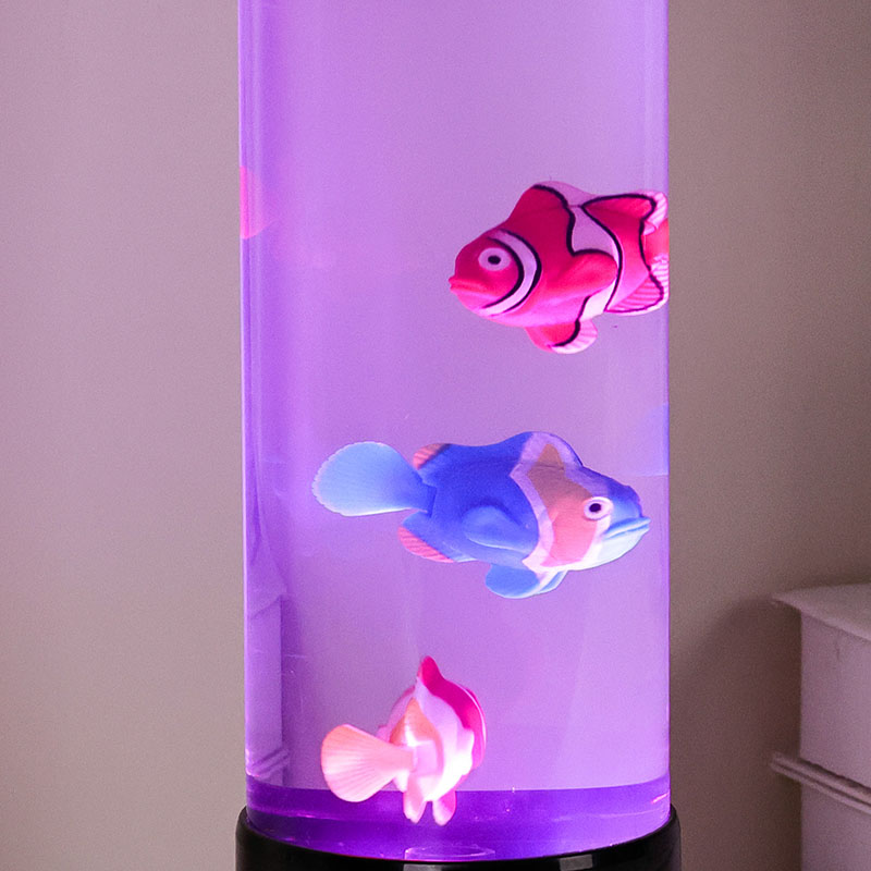 Die innere Flüssigkeit ist speziell so formuliert, dass sie den natürlichen Fluss des Wassers nachahmt, sodass Fische und Quallen langsam treiben können und das naturgetreue Aussehen verbessert wird. Diese Bewegung sorgt in Kombination mit wechselnden LED-Farben für eine sich ständig weiterentwickelnde Anzeige, die sich nie wiederholt.