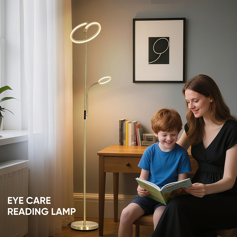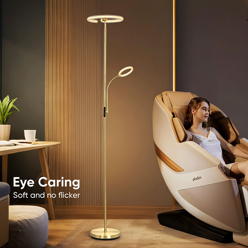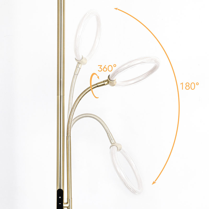 Die luxuriöse Gold-LED-Stehleuchte für das Wohnzimmer ist mit einer fortschrittlichen 360-Grad-Beleuchtungstechnologie aus Silikonschläuchen ausgestattet, die weiches und gleichmäßiges Licht ausstrahlt und den gesamten Raum effektiv beleuchtet. Silikonschläuche weisen eine gute Flexibilität und Haltbarkeit auf und können verschiedenen Umgebungsbedingungen standhalten, um Stabilität und Sicherheit zu gewährleisten