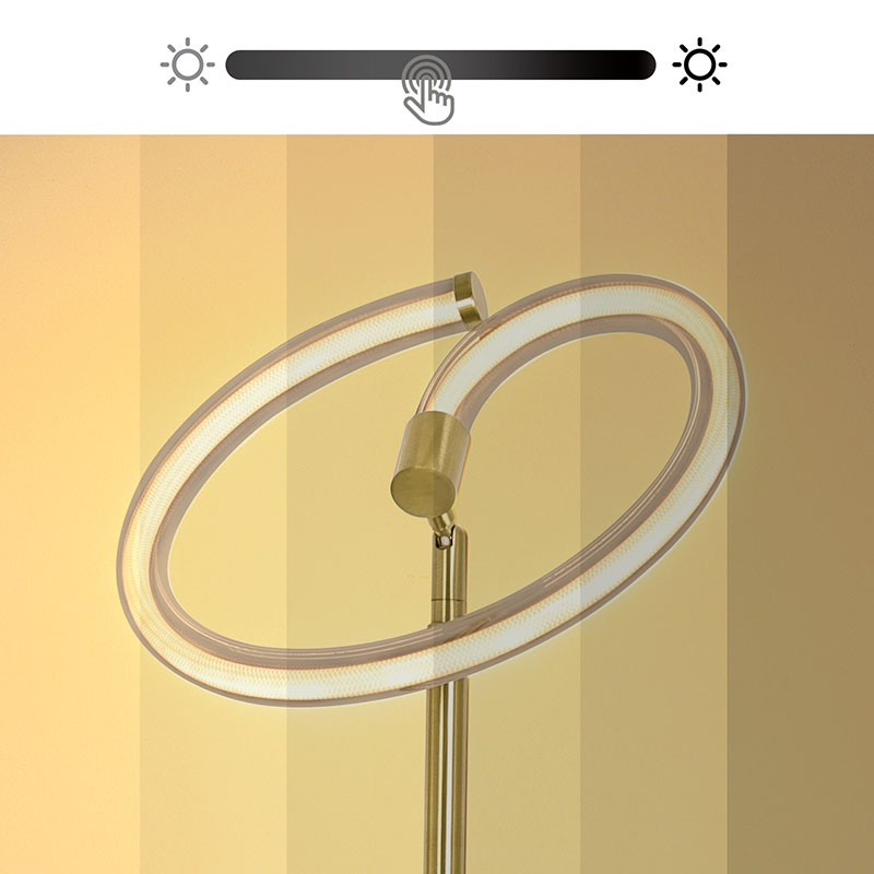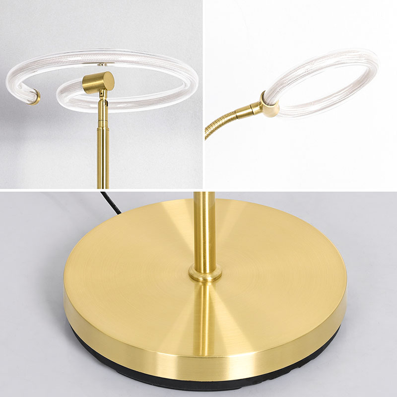 Messing, satiniertes NickelLuxuriöse goldene LED-Stehleuchte für das Wohnzimmer, entworfen aus goldenem Metallmaterial und Silikonschlauch für 360-Grad-Beleuchtung, ist mit ihrem einzigartigen Charme und ihrer hervorragenden Funktionalität eine ideale Wahl für moderne Haushalte geworden.