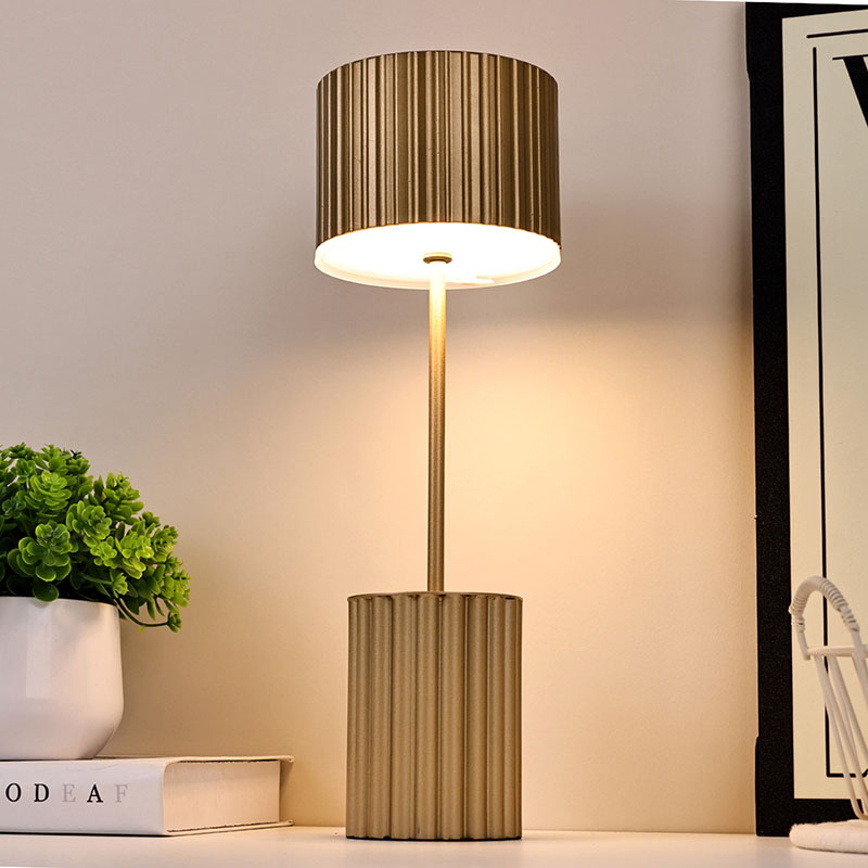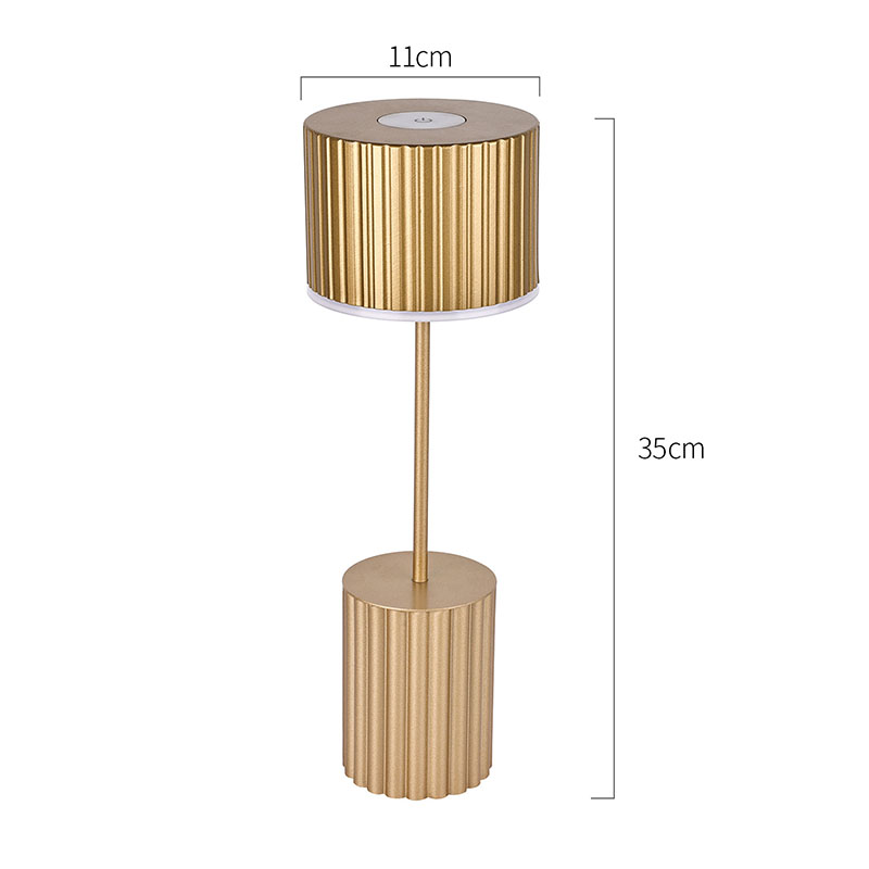 Die kleine Tischlampe mit Metallschirm und Batterie besteht aus hochwertigem Metallmaterial mit einer fein polierten und behandelten Oberfläche, die eine glatte und zarte Textur und einen eleganten Glanz aufweist. Ob Gold, Silber oder andere klassische Farben, sie passen perfekt zu verschiedenen Einrichtungsstilen und schaffen eine moderne und luxuriöse Atmosphäre