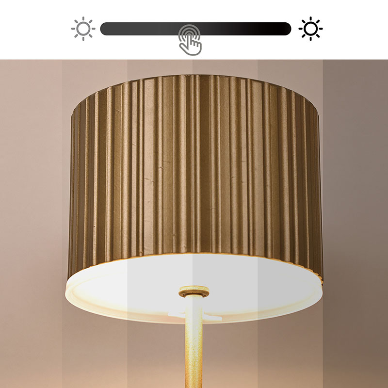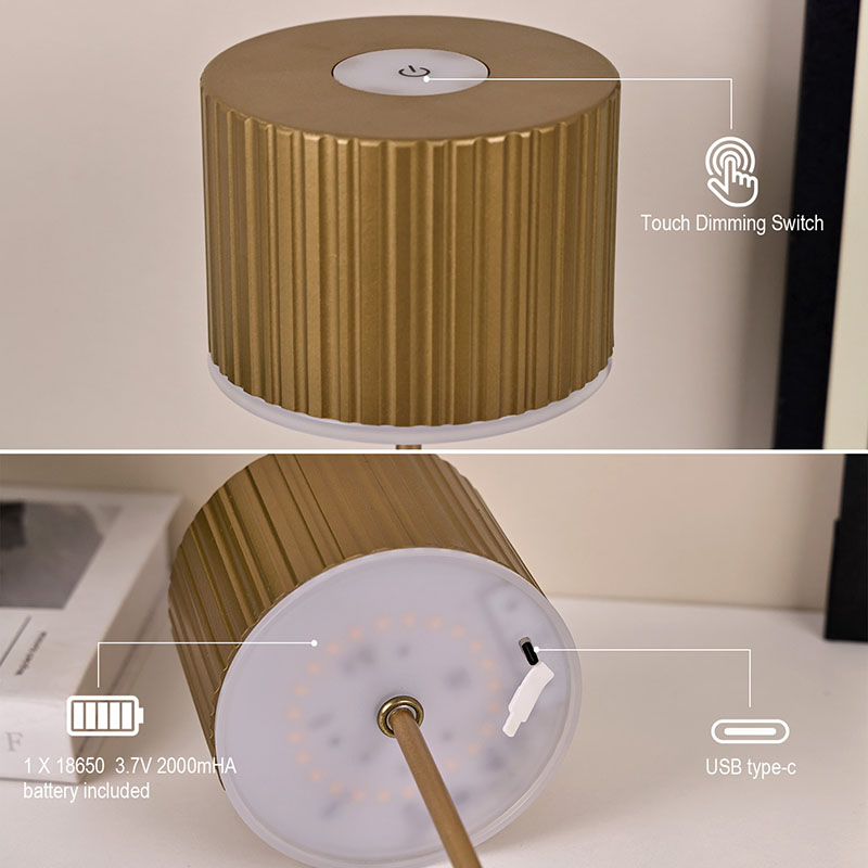 Touch-Schalter (Typ-C-Ladung)Um den Beleuchtungsanforderungen verschiedener Szenarien gerecht zu werden, ist die kleine Tischlampe mit Metallschirm und Akku mit einer fortschrittlichen 3-Stufen-Dimmfunktion ausgestattet. Mit einfachen Bedienvorgängen können Sie die Intensität der Beleuchtung frei einstellen.