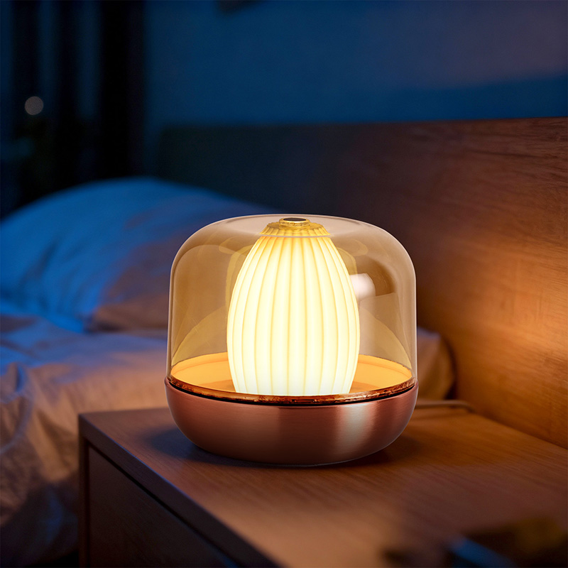 Die Designinspiration dieses warm leuchtenden Nachtlichts entspringt der Verschmelzung von Natur und architektonischer Ästhetik. Mit seiner runden und prallen Gesamtform ähnelt es einem sorgfältig geschnitzten Bernstein-Edelstein. Auf einem Schreibtisch oder Tisch platziert, wird es mühelos zum visuellen Blickfang. Die äußere Schicht verfügt über eine hochtransparente Abdeckung, die nicht nur die interne Lichtquelle schützt, sondern durch Brechung auch einzigartige Licht- und Schattenschichten erzeugt, die einen traumhaften visuellen Effekt erzeugen.