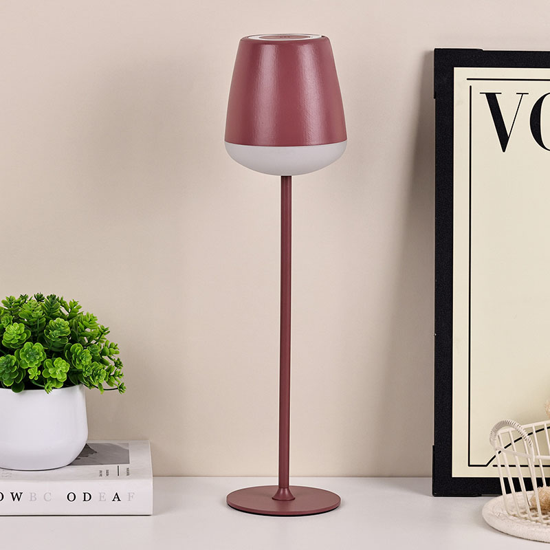 Touch-DimmschalterDas Design des Lampenschirms, der einem hohen Weinglas ähnelt, zeichnet sich durch glatte und künstlerische Linien aus, wobei jedes Detail einen einzigartigen Geschmack zum Ausdruck bringt. Der Lampenschirm ragt leicht nach außen und ähnelt dem Rand eines Weinglases, was sowohl ästhetisch ansprechend als auch praktisch ist. Die rote LED-Schreibtischlampe mit hohem Fußglasschirm kann das Licht gleichmäßig und sanft verteilen.