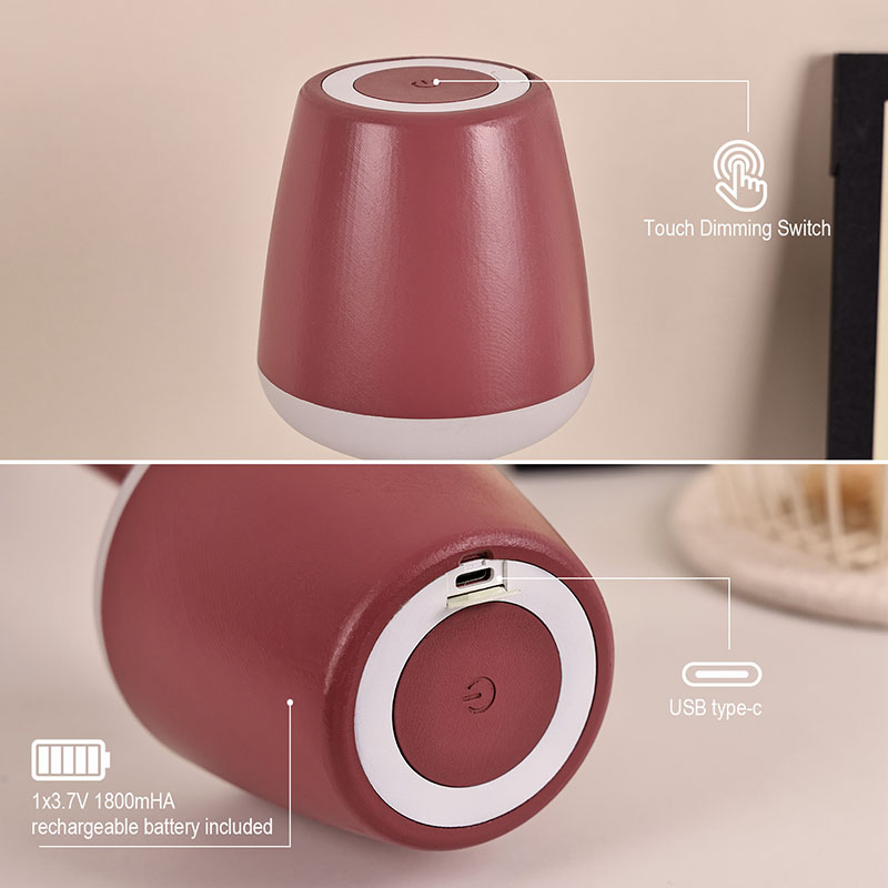 Die LED-Schreibtischlampe „Red Wine“ mit hohem Fuß und Glasschirm ist mit einem praktischen Batteriestromversorgungssystem ausgestattet, sodass Sie sich keine Sorgen mehr um die Suche nach einer Steckdose machen müssen. Ganz gleich, ob Sie vorübergehend auf dem Sofa im Wohnzimmer lesen oder bei einer Campingnacht im Freien für eine warme Atmosphäre sorgen: Setzen Sie den Akku einfach vorsichtig ein und er leuchtet sofort auf und bringt Ihnen Helligkeit