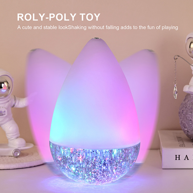 Das Besondere daran ist, dass das farbenfrohe Roly-Poly-Spielzeug-Nachtlicht mit RGB-Glitzer standhält, egal wie stark es wackelt