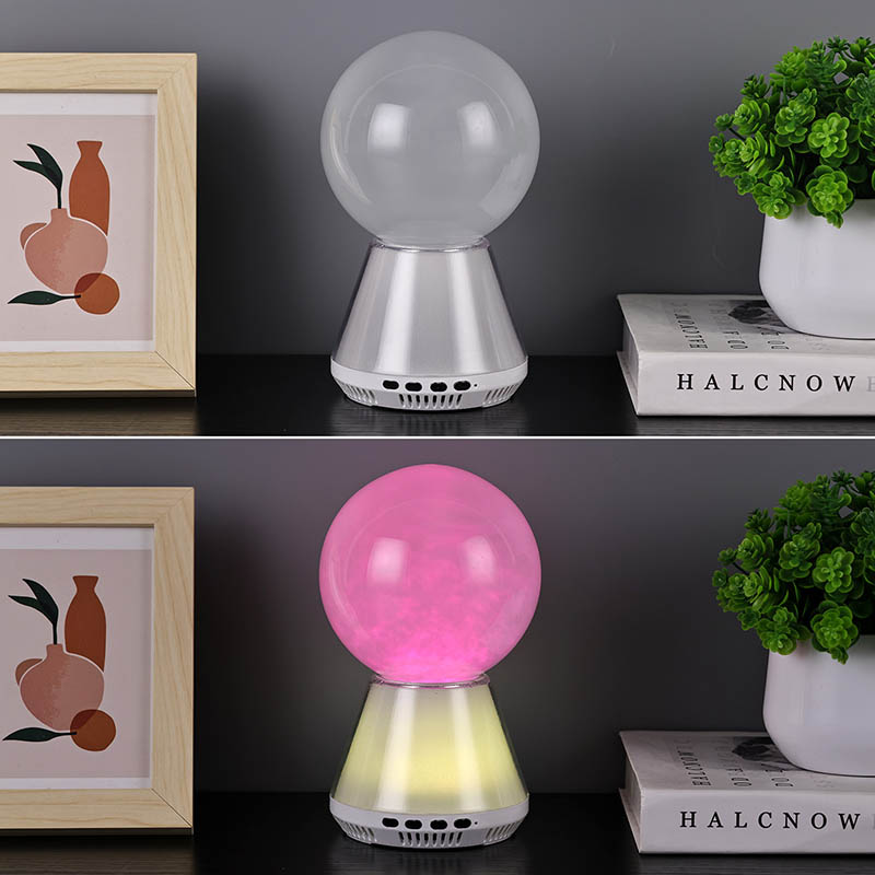 Die RGB-LED-Glitzerlampe mit Bluetooth-Steuerung, die den Flüssigkeitsfluss in einer Glaskugel in einen wolkenähnlichen Zustand versetzt, synchronisierte Farbänderungen zwischen der Basis und der Flüssigkeit sowie eine Bluetooth-Verbindung zum Abspielen von Musik, soll eine verträumte Welt für Sie schaffen. Die RGB-LED-Glitzerlampe mit Bluetooth-Steuerung ist nicht nur ein praktisches Nachtlicht, sondern auch ein magisches Kunstwerk.
