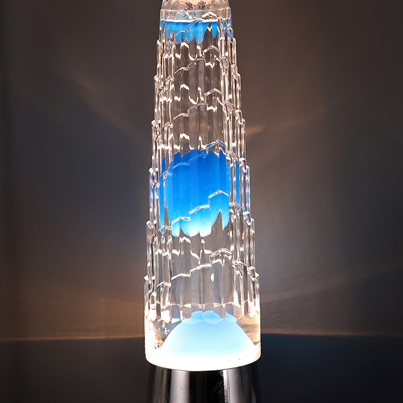 Die Tischlampe „Tower Shade Lava Lamp“ sorgt nicht nur für sanftes Licht, sondern schafft auch eine traumhafte Atmosphäre für Sie. Jedes Mal, wenn Sie diese Lampe betrachten, fließt das blaue Wachs im klaren Wasser