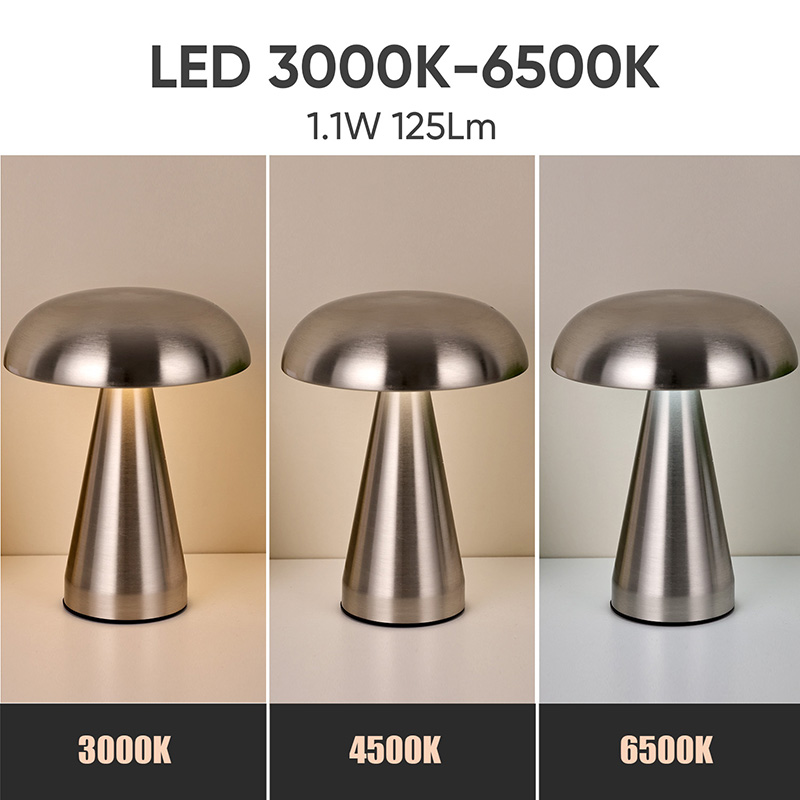 Ganzmetall-LED-Schreibtischlampe mit Pilzschirm hat 3000 K (warmes Licht), 4500 K (natürliches Licht), 6500 K (weißes Licht) und 3 Lichtfarbwechsel