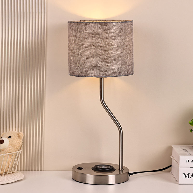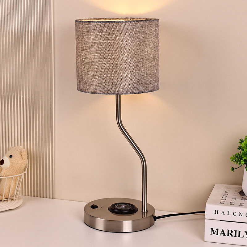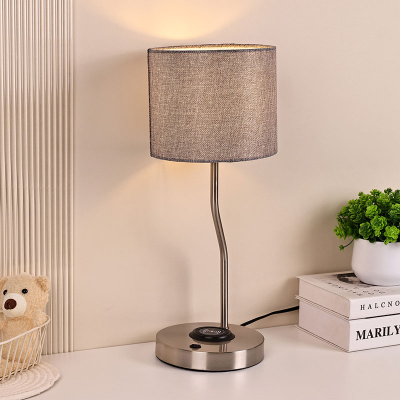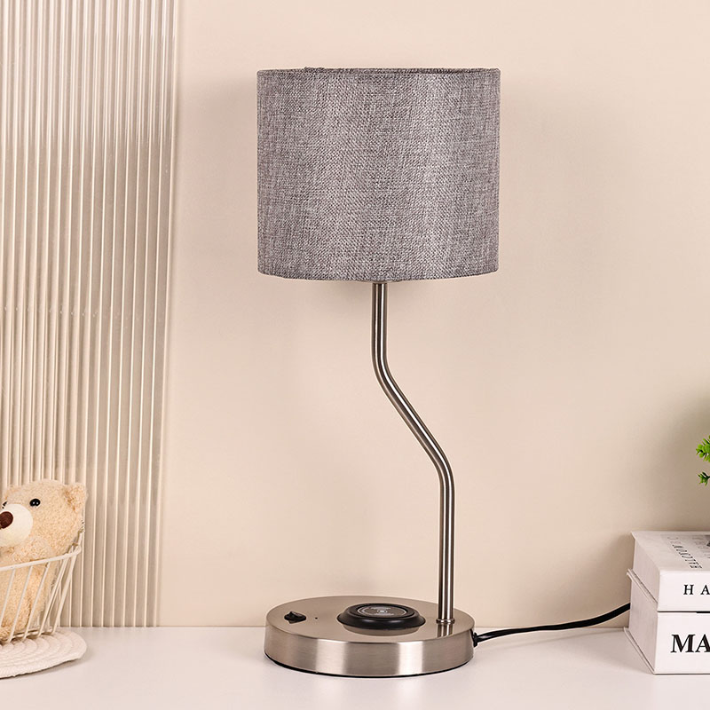 Schreibtischlampe mit kabellosem Telefonladegerät und Stoffschirm aus traditionellem Stoffschirm