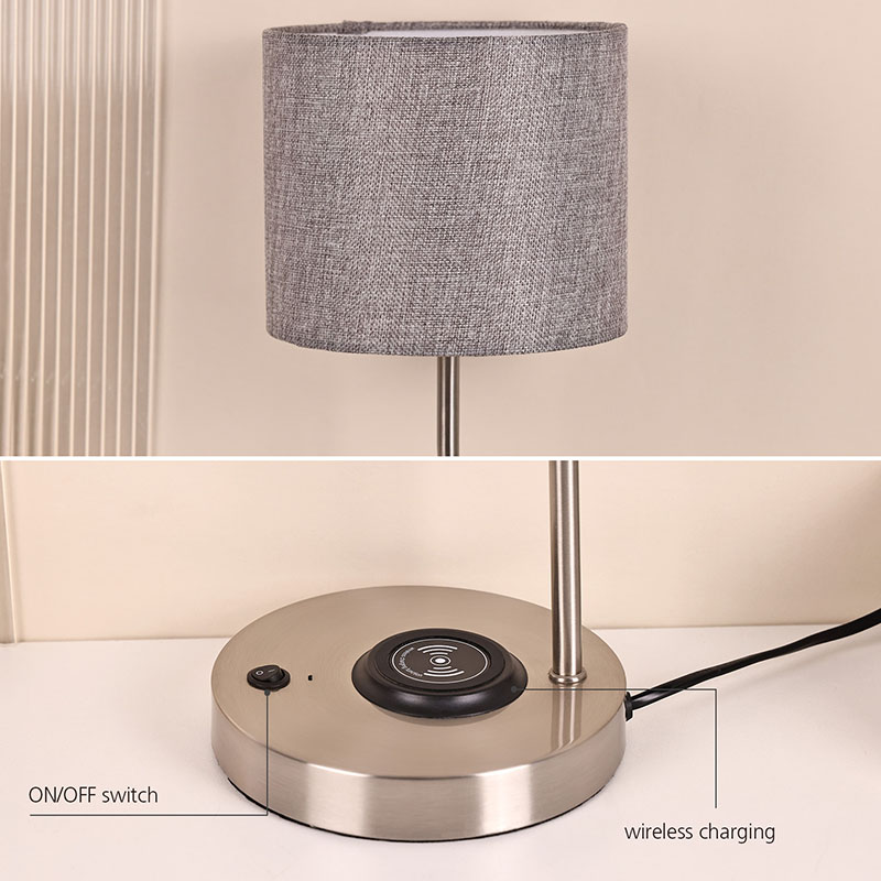 Die Schreibtischlampe mit kabellosem Telefonladegerät und Stoffschirm ist außerdem mit einer fortschrittlichen kabellosen Ladefunktion für Mobiltelefone ausgestattet. Platzieren Sie das kabellose Ladegerät einfach sanft auf der Basisstation, um es schnell aufzuladen, ohne mühsames Einstecken. Die kabellose Ladetechnologie verbessert nicht nur den Bedienkomfort, sondern vermeidet auch das Problem unordentlicher Kabel, wodurch Ihr Desktop aufgeräumter und schöner wird